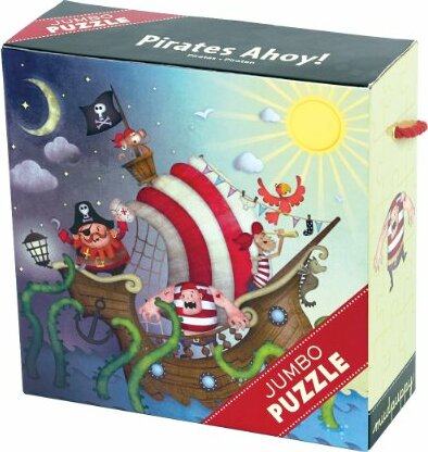 There's fun to be had on the open sea with Mudpuppy's Pirates Ahoy! Jumbo Puzzle. The 25 oversized and durable puzzle pieces fit together an exciting image of pirate adventure. Perfect for developing hand-eye coordination, this puzzle makes a great gift for a young puzzler—even with an eye patch and a hook!