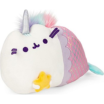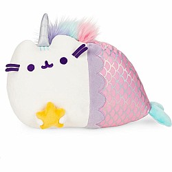 - MAGICAL LIGHTS MERMAID PUSHEENICORN: The adorable Magical Lights Mermaid Pusheenicorn is 12' tall and boasts a shiny silver horn, pink foil-print mermaid tail, and silky multicolored mane. Pet her mane for a dazzling touch-activated LED light effect!