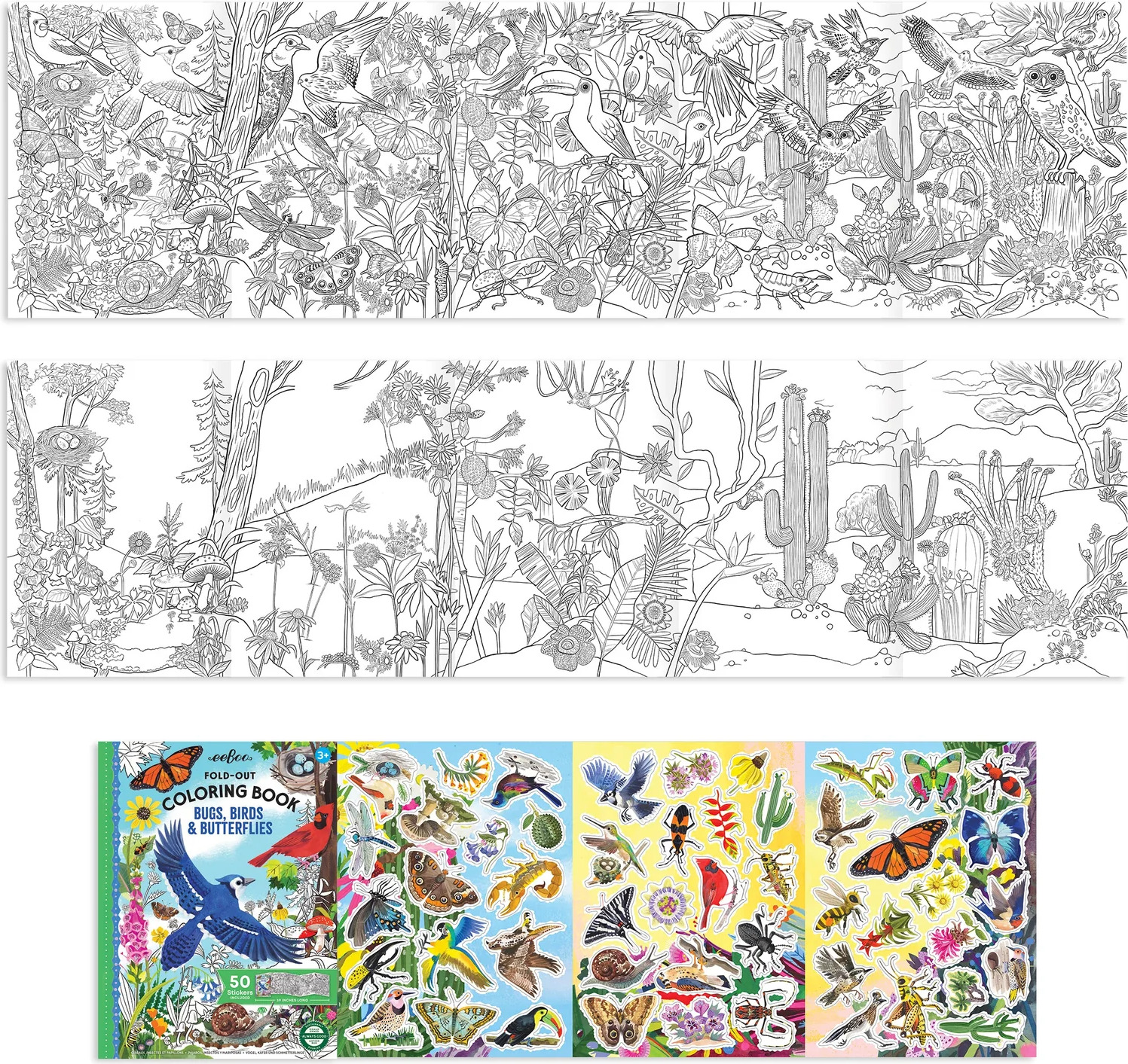 Fold Out Coloring Book, Bugs, Birds, and Butterflies
