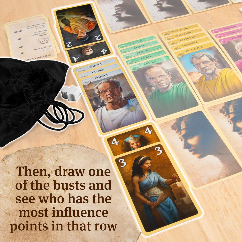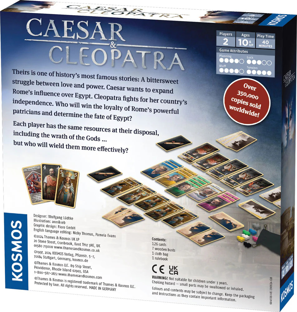 Theirs is one of history’s most famous stories: a bittersweet struggle between love and power. Caesar wants to expand Rome’s influence over Egypt. Cleopatra fights for her kingdom’s independence. Who will be able to win the loyalty of Rome’s powerful patricians and determine the fate of Egypt? Both players have the same resources at their disposal, including the wrath of the Gods … but who will wield them more effectively?