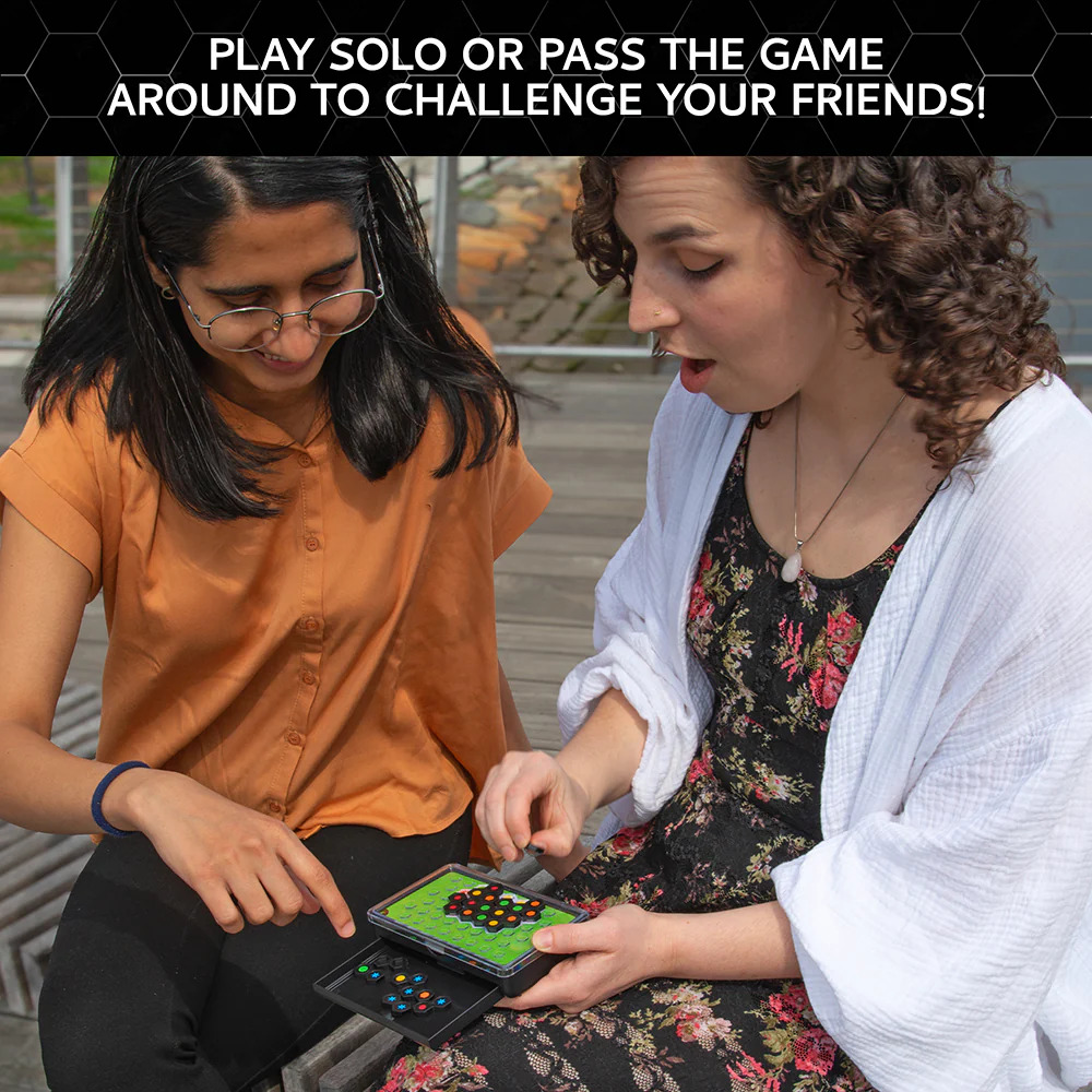 Spark your inner genius with this pocket-sized puzzle game. Your goal is to place the colorful domino-style tiles in exactly the right places to complete each challenge. With 200 challenges in four difficulty levels and a compact case, this game provides hours of puzzle-solving fun, virtually anywhere. Play solo, or pass the game around to challenge your family and friends. Put your logical thinking skills to the test! Can you master all of the challenges?