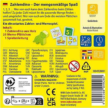 Game Contents: 1 wooden number dinosaur 25 memo tiles 1 set of game instructions.