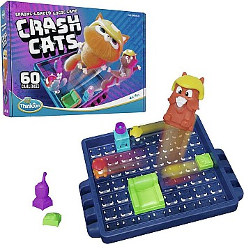 Introducing Crash Cats by ThinkFun, the sliding back block puzzle that sends cats flying! Pick the challenge, set up the board, and slide those cats! The cats slide all the way until they are sent flying. Crash the yellow helmeted cats so only the red helmet cat remains. With challenges from Beginner to expert, you'll be sliding and crashing cats for hours.
