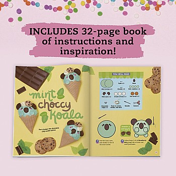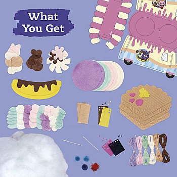 Learn to sew with the most delicious-looking projects ever! Each scoop of ice cream is also an animal, including a cat, koala, bunny, and more. Mix and match your critters to build your own felt cone or sundae. Stitch them together for double scoops. Build a papercraft ice cream truck holder and dish to show off your sweet new friends.