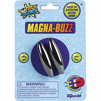 An exciting science toy from Toy Science™, Magna-Buzz includes 2 hematite magnets packaged on a blister card. When tossed in the air, these powerful hematite magnets create electrifying buzz sounds that are oddly satisfying. The Magna-Buzz is ideally suited for kids 8+ and makes a fun toy for the home or a great educational teaching aid for school. Each magnet measures 2.25 inches long and is a shiny silver color.