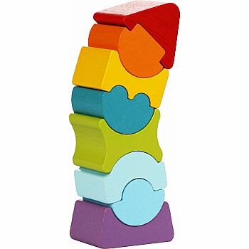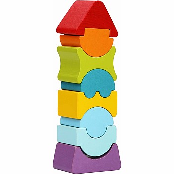 The Cubika Tower kit is a construction set to create a colorful tower. There are multiple ways that the tower can be built allowing for variations in design and colors. All parts of this tower kit are made from wood and are painted with non-toxic water-based paint for your child's safety. This toy is designed to develop creative thinking, imagination, fine motor skills, and the ability to recognize and match shapes and colors.