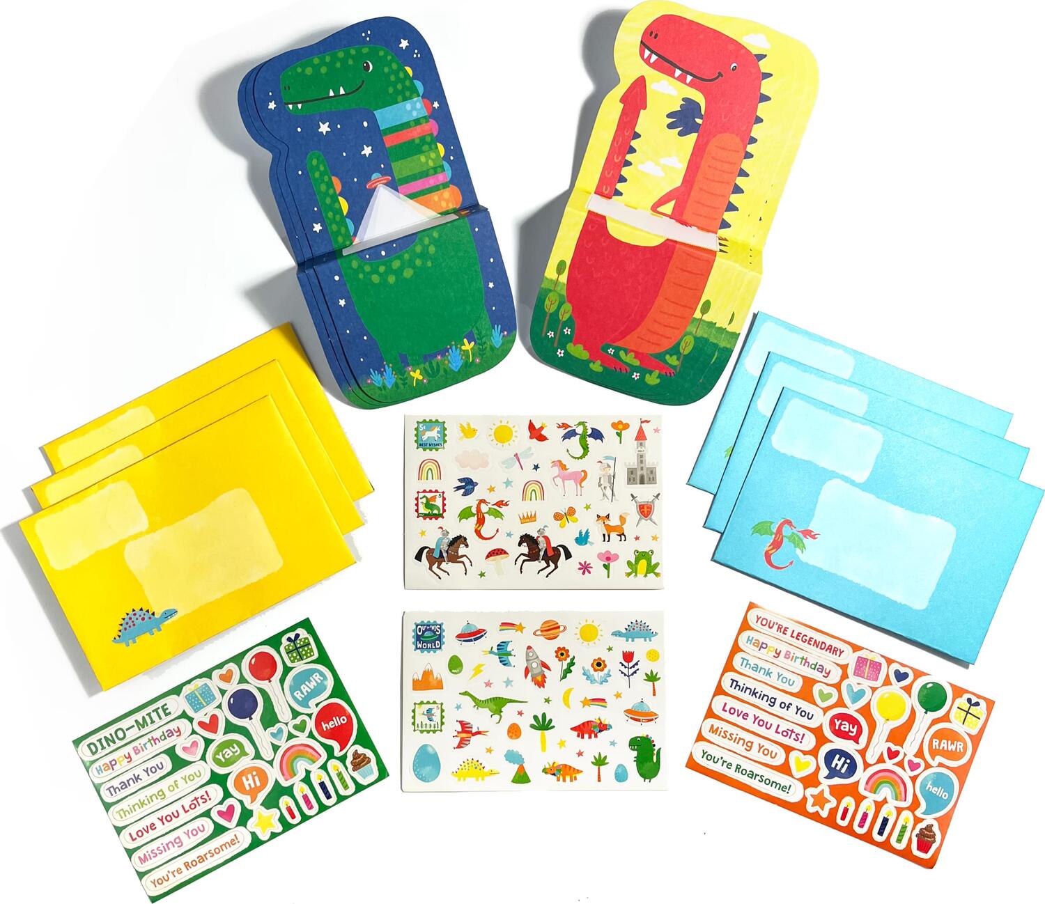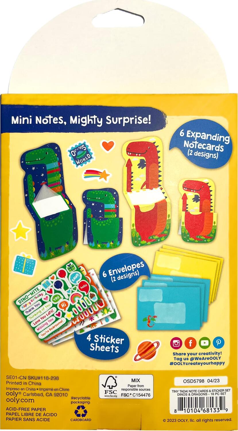 Tiny Tada! Note Cards and Sticker Set, Dinos and Dragons