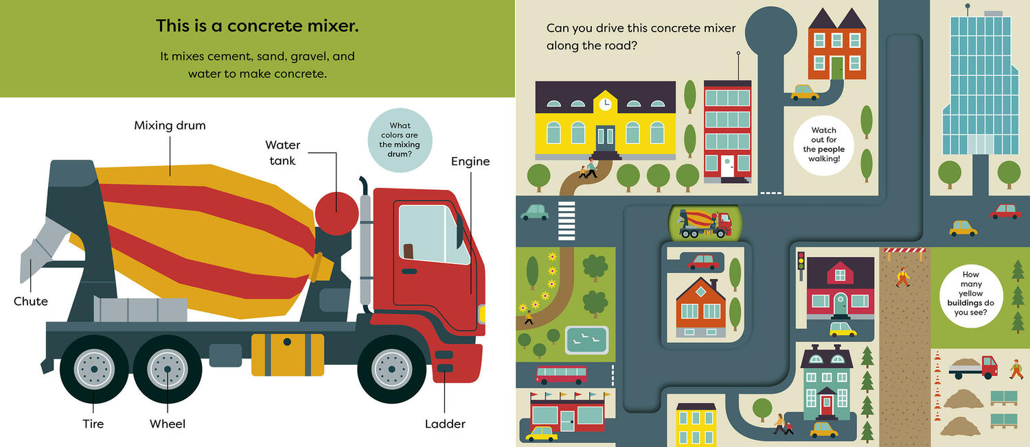 Discover things that go in this chunky new Make Tracks board book, and trace each vehicle’s path through a new building site. In this interactive series with easy-to-use, durable sliders, your toddler can operate a concrete mixer, a dump truck, an excavator, a bulldozer, and a front loader! Perfect for helping toddlers develop hand-eye coordination, while also encouraging interaction with simple construction-themed first words, clear diagrams, and helpful text prompts to learn through play.