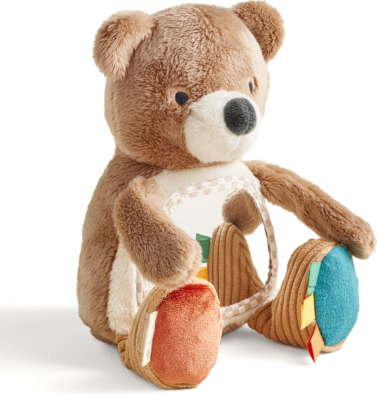 Objects in the Itzy Bitzy Mirror™ are cuter than they appear! Watch as your babe smiles at their reflection in the mirror, reaches for the textured feet, and grasps for the ribbons. Attach to your car seat for on-the-go entertainment and sensory play. Tummy time never looked better!
