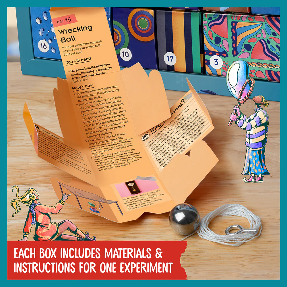 ‘Tis the season for science! Christmas time is experimentation time. Discover something new and amazing every day leading up to the holiday. With this advent calendar, children open a new box each day to find new equipment or materials and the instructions for a science experiment. The experiments can be done quickly and only require additional items that are commonly found in every household. Each of the 24 beautifully designed boxes includes unique experiment materials and expertly written and illustrated instructions.