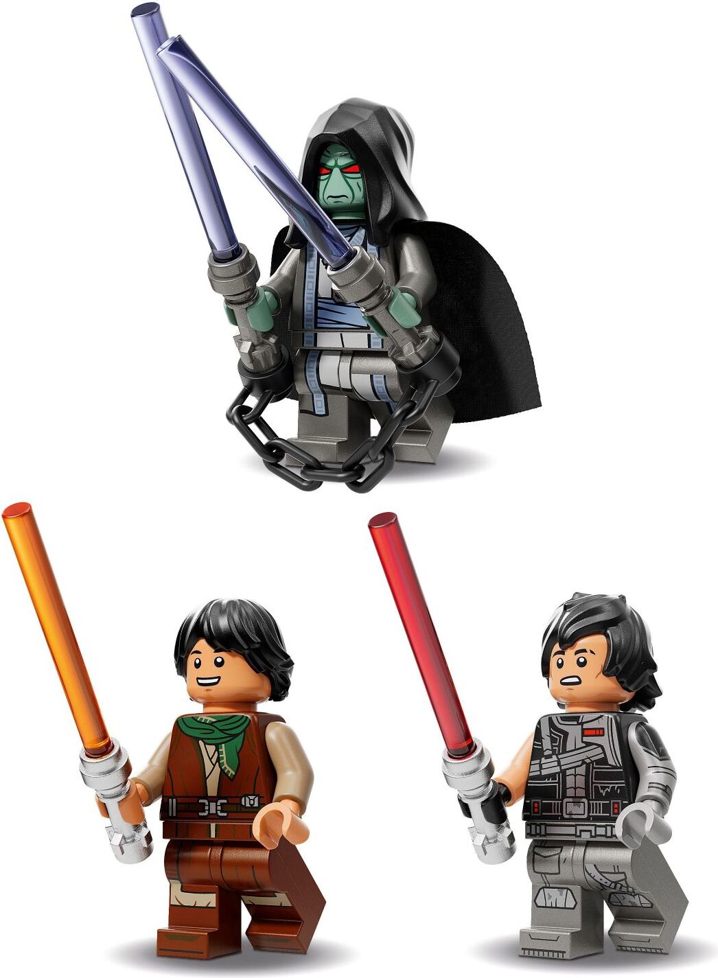• 3 LEGO® Star Wars™ minifigures – Sig Greebling with a Lightsaber™, Darth Dev with a Lightsaber™ and Solitus, who has a dual Lightsaber™ with a chain