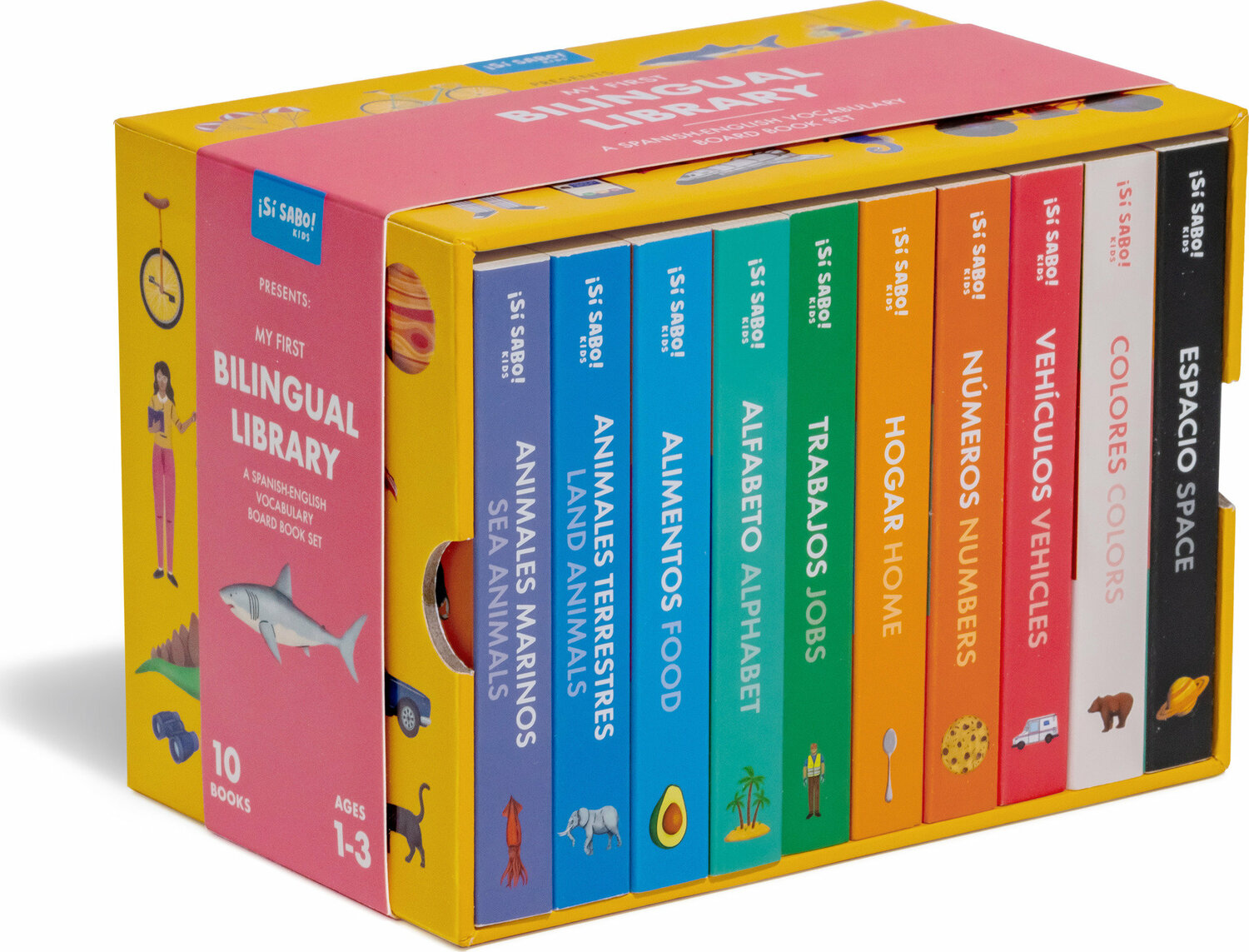 Get a head-start on your baby's Spanish-speaking skills with this bilingual board book box set—the perfect gift for newborns and baby showers!My First Bilingual Library includes 10 board books that introduce your child to Latin American culture while teaching them foundational English-Spanish vocabulary. The durable materials and small book size also make them perfect for your baby's little hands.