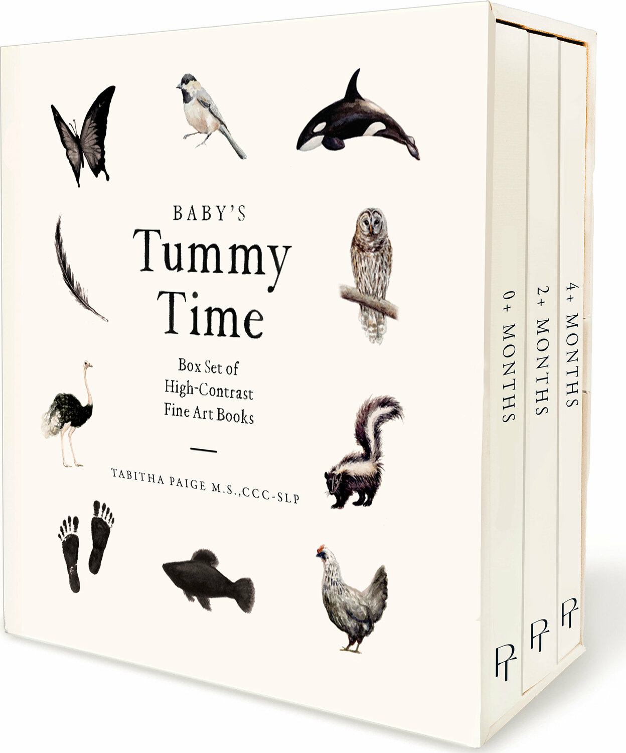 Featuring high-contrast art that is specially designed for a baby's visual development, this box set of three accordion-style board books will aid your baby’s visual development during tummy time!Infants have limited capabilities with vision upon birth and respond well to high-contrast images, which is why this high-contrast book box set is perfect for their young and growing minds. The three accordion-style board books included in this set provide developmentally appropriate visual stimuli for your baby’s visual development, while exposing them to life-like imagery that can grow with them and expand their vocabulary. Each watercolor painting was designed by Tabitha Paige, artist, speech pathologist, and author of the best-selling series