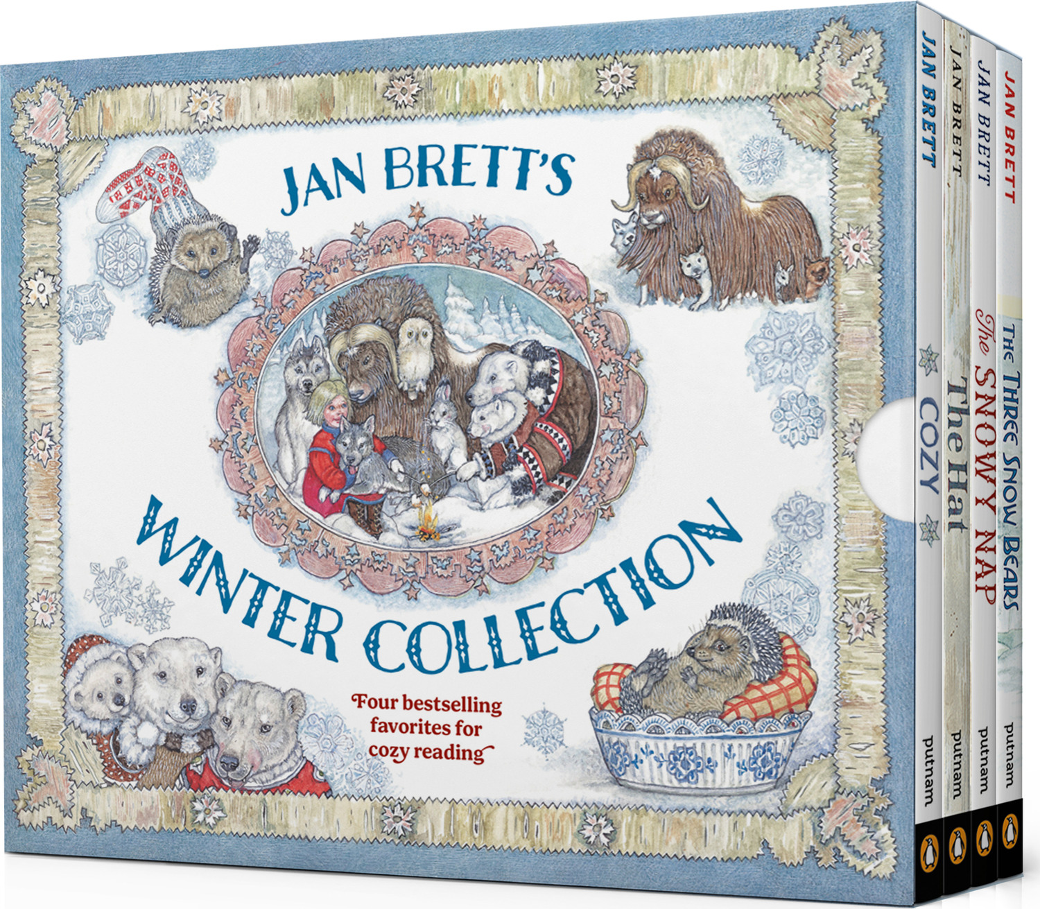 From Hedgie's adventures trying to stay awake to see the wonders of winter and entertaining all of his animal friends with a stocking on his head, to Cozy the musk ox keeping a sometimes boisterous group of animals warm during the Alaskan winter, and three of the furriest bears with the coziest house you've ever seen, Jan Brett's favorite characters are sure to entertain during any weather.