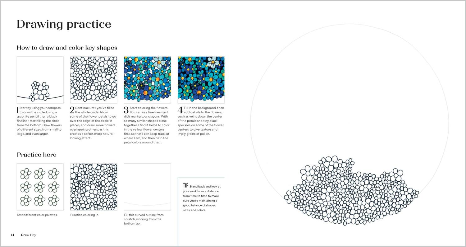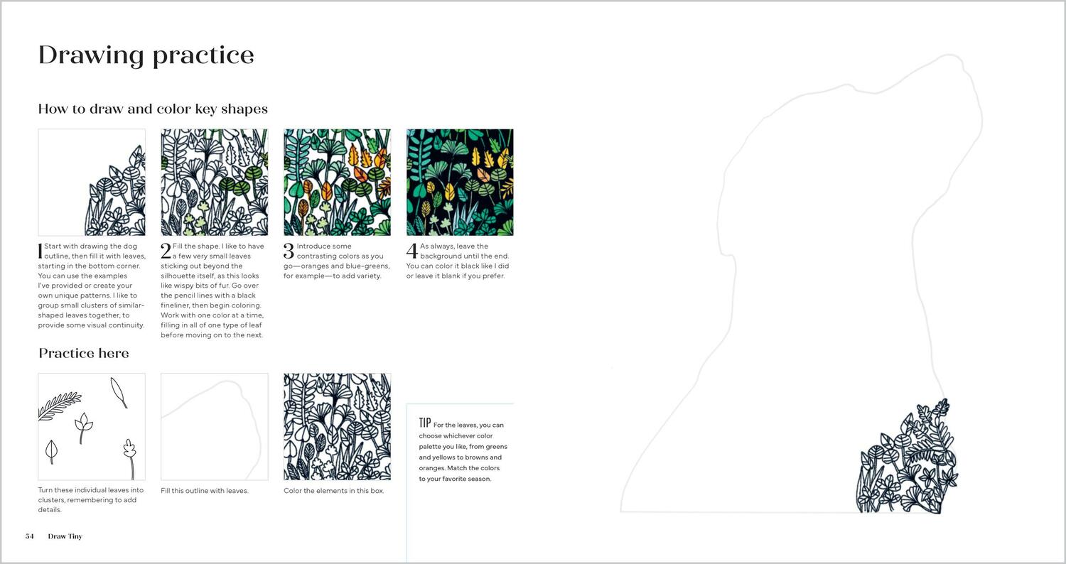 Learn how to draw a few simple shapes, repeat the pattern across the page, and discover how relaxing and fun it is to Draw Tiny with this engaging activity book! You don't have to be an artist to draw tiny. Author Anna Tjalsma-Pogorzelec's signature drawing technique utilizes simple shapes and repeating patterns to create artful doodles of mushrooms, leaves, flowers, ladybugs, cats, and much more, making it a meditative practice for everyone, regardless of drawing skills.