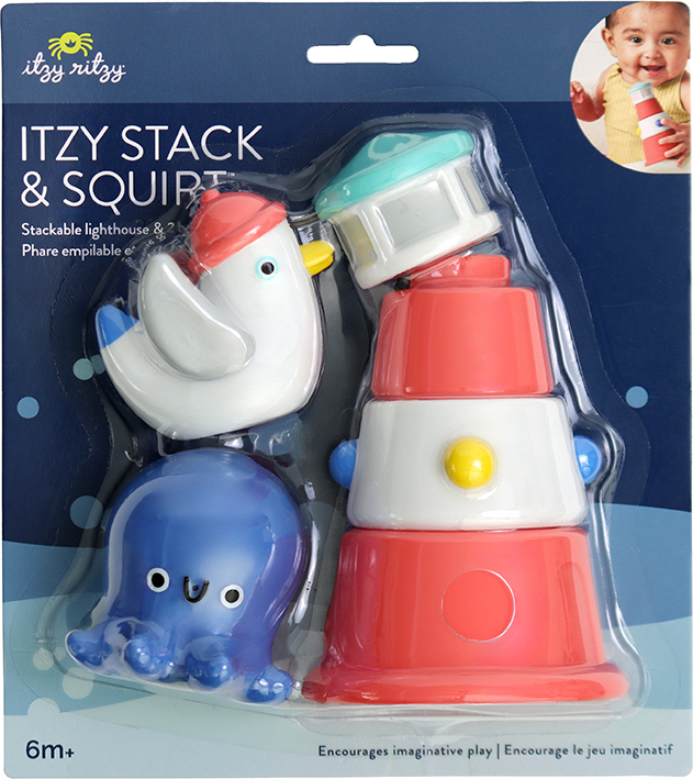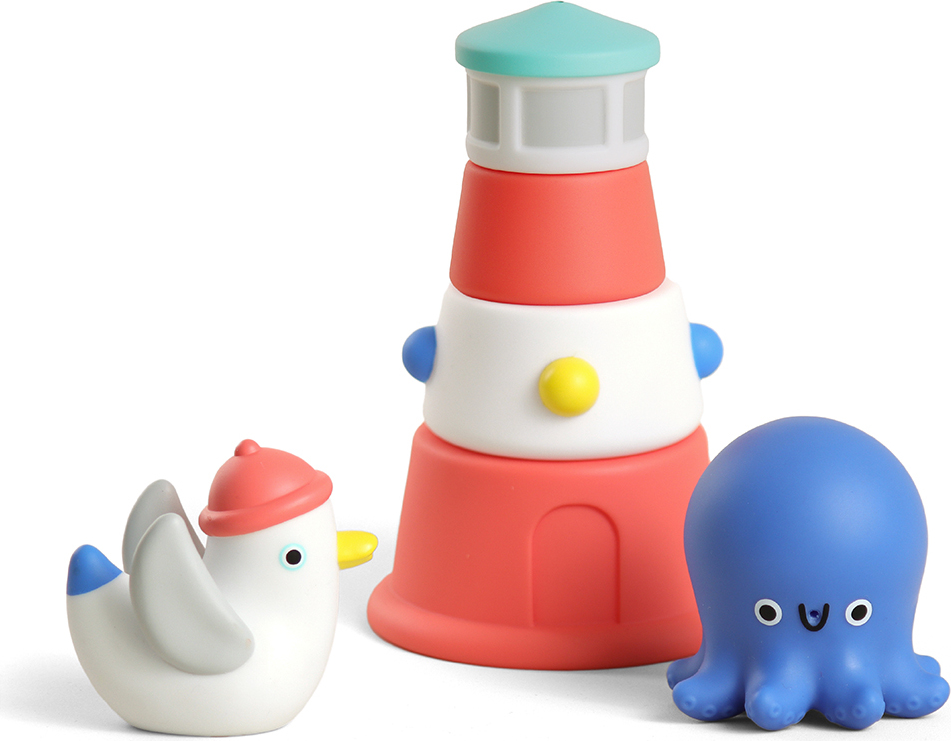 The stackablelighthouse encourages motor skill developmentand the water-squirting octopus and seagull stimulate the senses. Get ready to set sail for endless bathtime adventures!