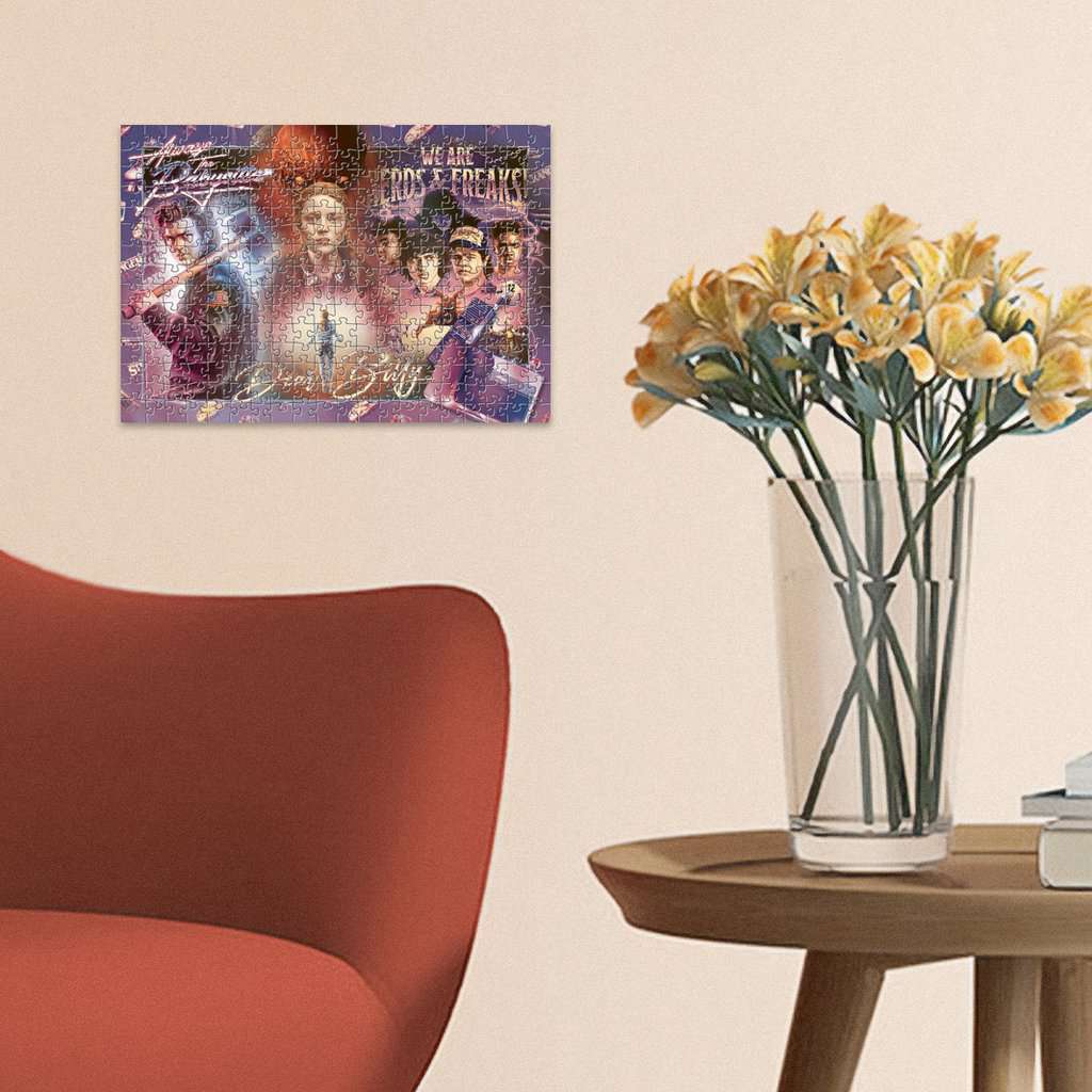 Embark into the upside-down world of Hawkins, Indiana with our 300-piece puzzle featuring favorite characters from the hit Netflix series “Stranger Things!” In the season 4 fourth episode entitled “Dear Billy,” the gang tries to help Max from becoming Vecna’s next target. She visits her step-brother Billy’s grave, reading him her heartfelt letter of apology. But is it too late to help Max? Can listening to her favorite song help her escape Vecna’s hold? Piece together the solution and find out!
