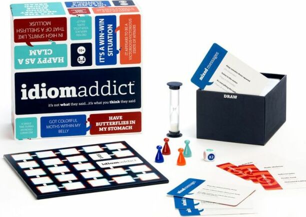 Idiom Addict™ is the party game that challenges players to decipher idioms and common phrases.
